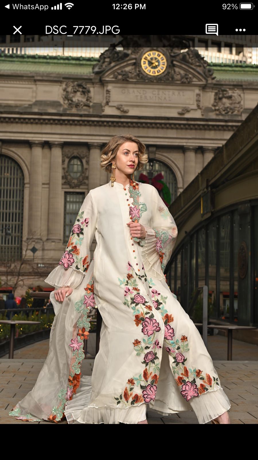• Color Palette: A sophisticated Antique Ivory , complemented by a Sandy Gold muslin dupatta.