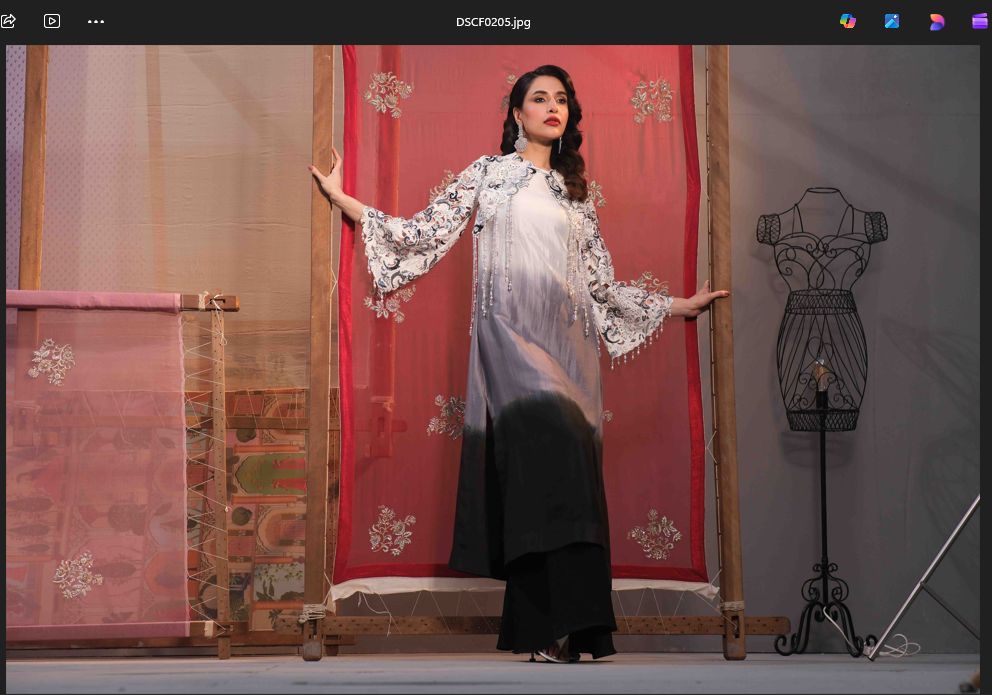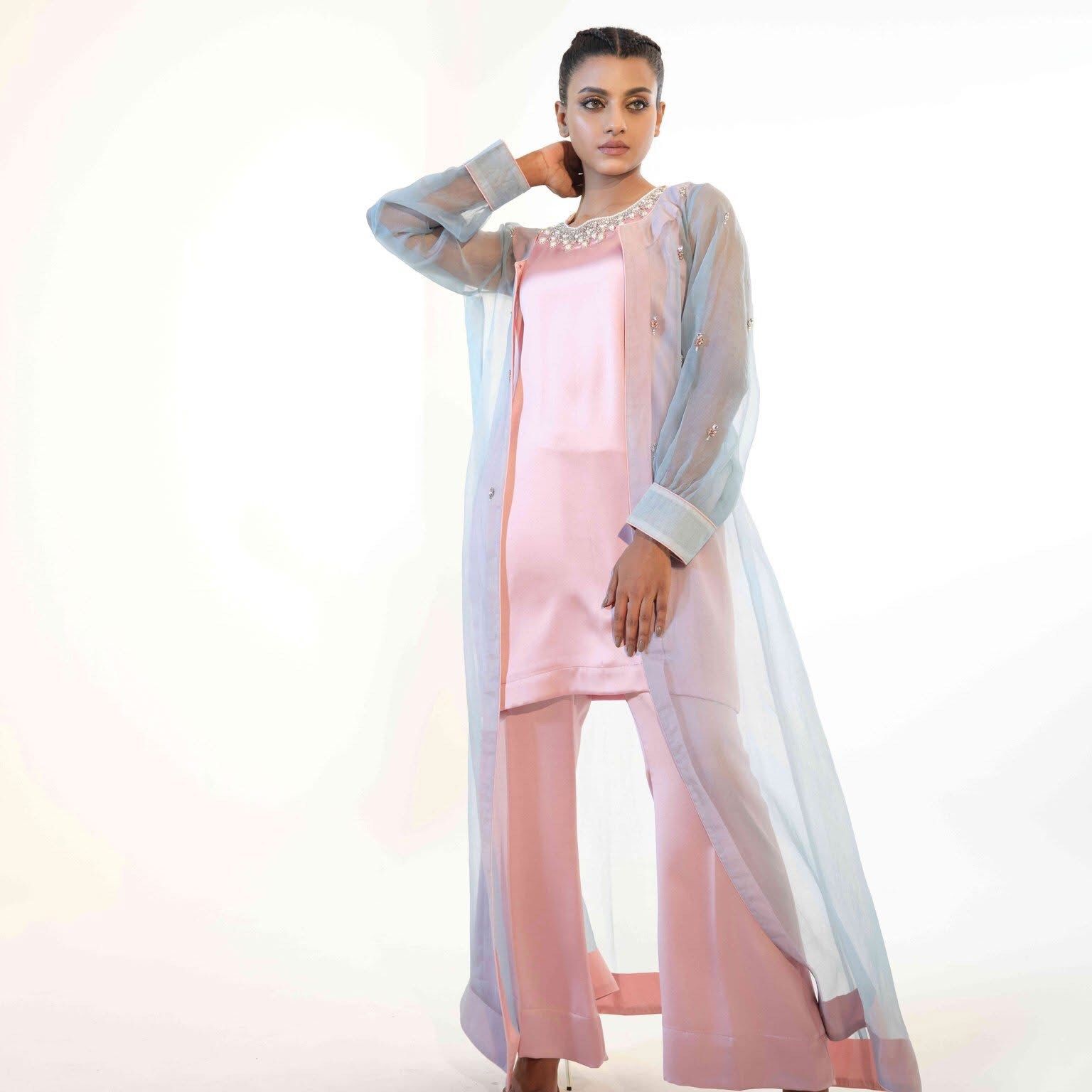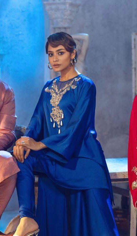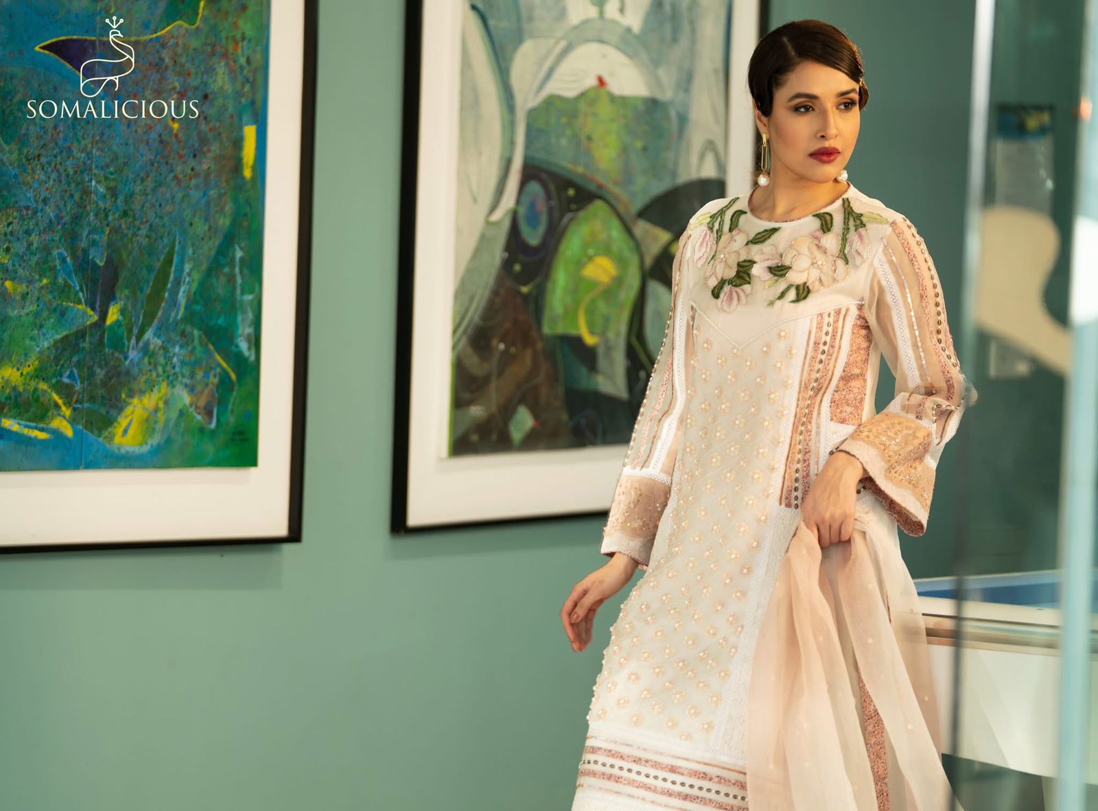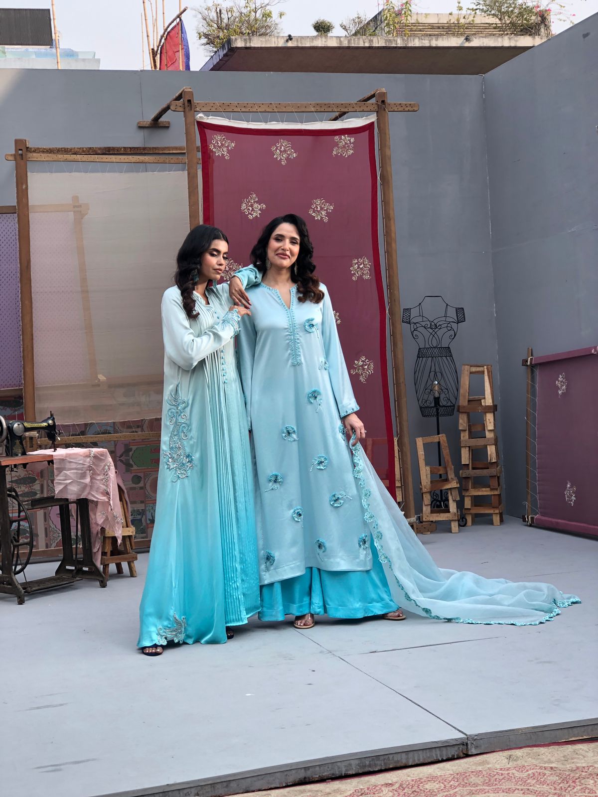• The Silhouette (Kamiz): A long, straight-cut Kamiz tailored from imported fine crape. The fabric offers a fluid, luxurious drape that skims the body perfectly, providing a sophisticated sheen that shifts with the light.