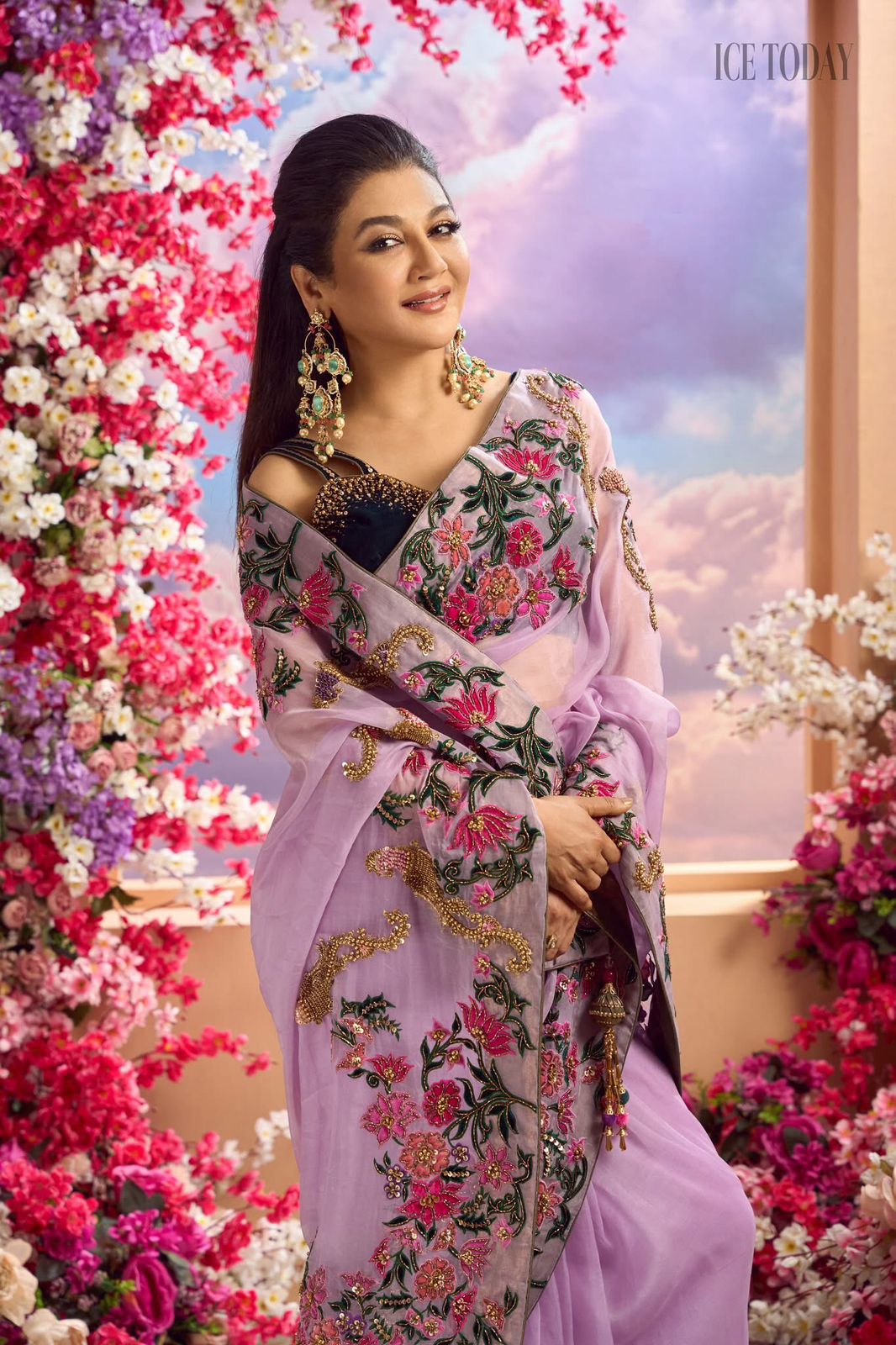 • Pattern: A blend of structured contemporary tailoring and organic, flowing floral embroidery patterns.