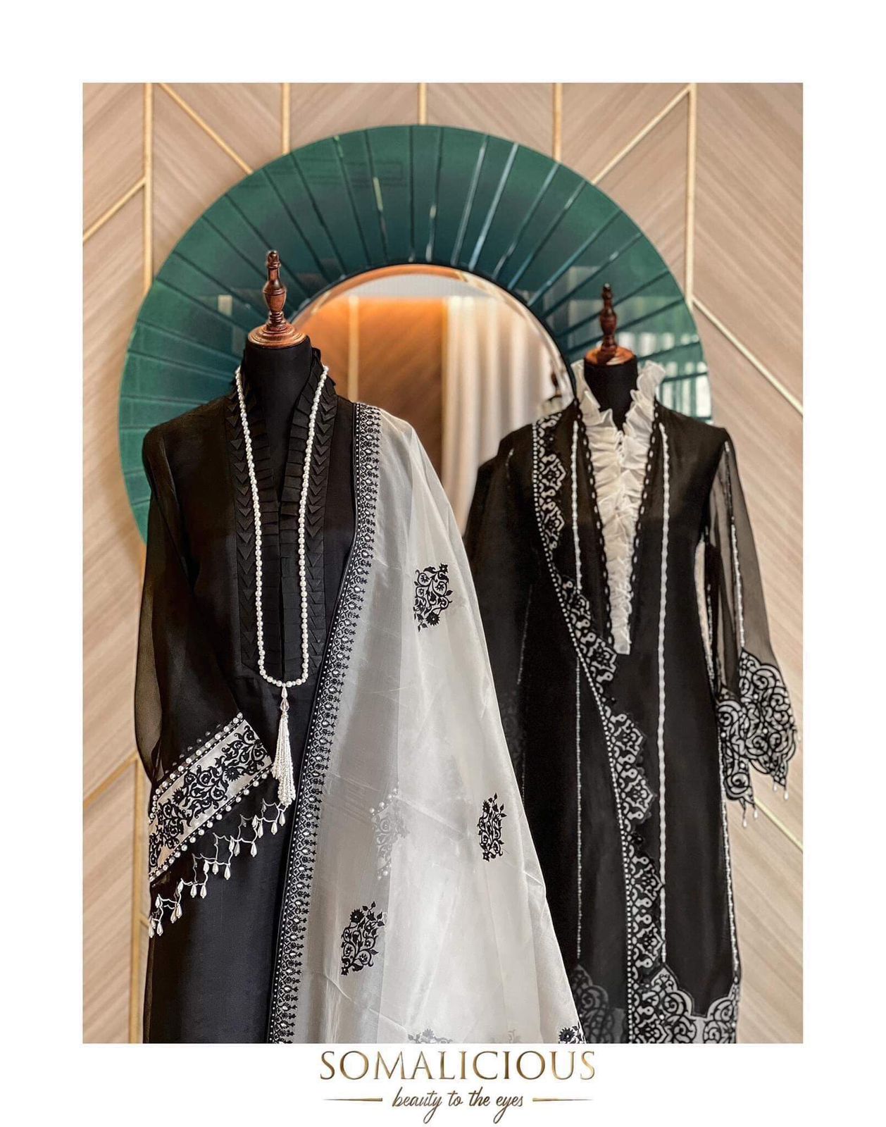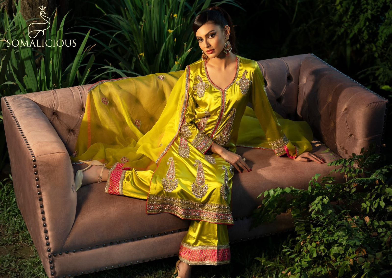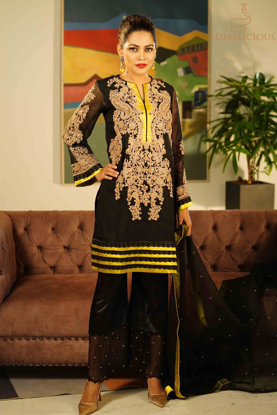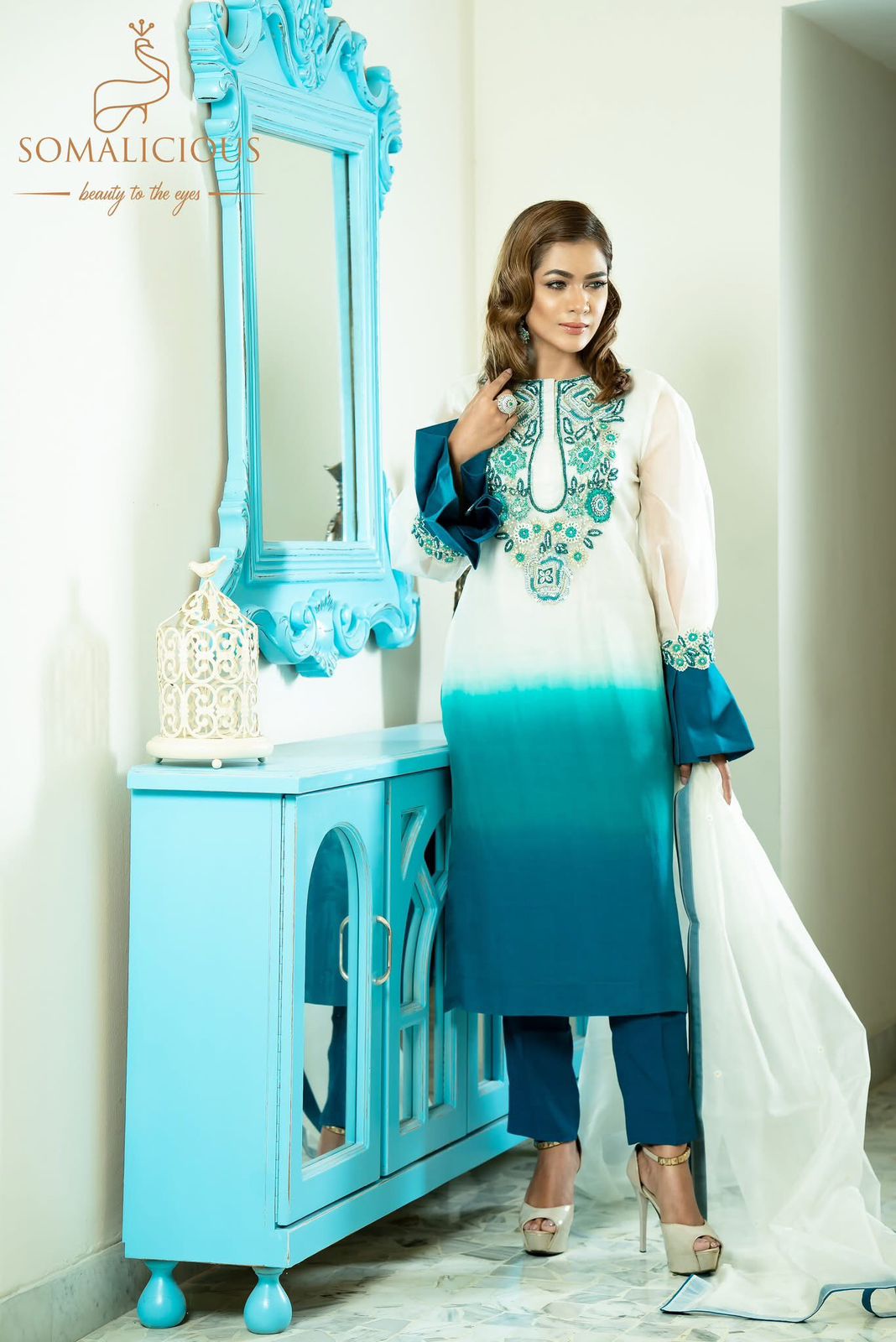 • The Silhouette (Kamiz): A long, straight-cut Kamiz tailored from imported fine crape. The fabric offers a fluid, luxurious drape that skims the body perfectly, providing a sophisticated sheen that shifts with the light.