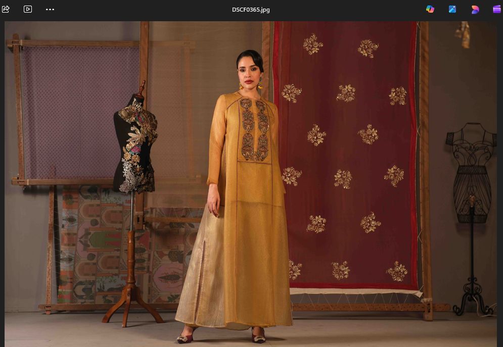 • Color Palette: A sophisticated Antique Ivory , complemented by a Sandy Gold muslin dupatta.