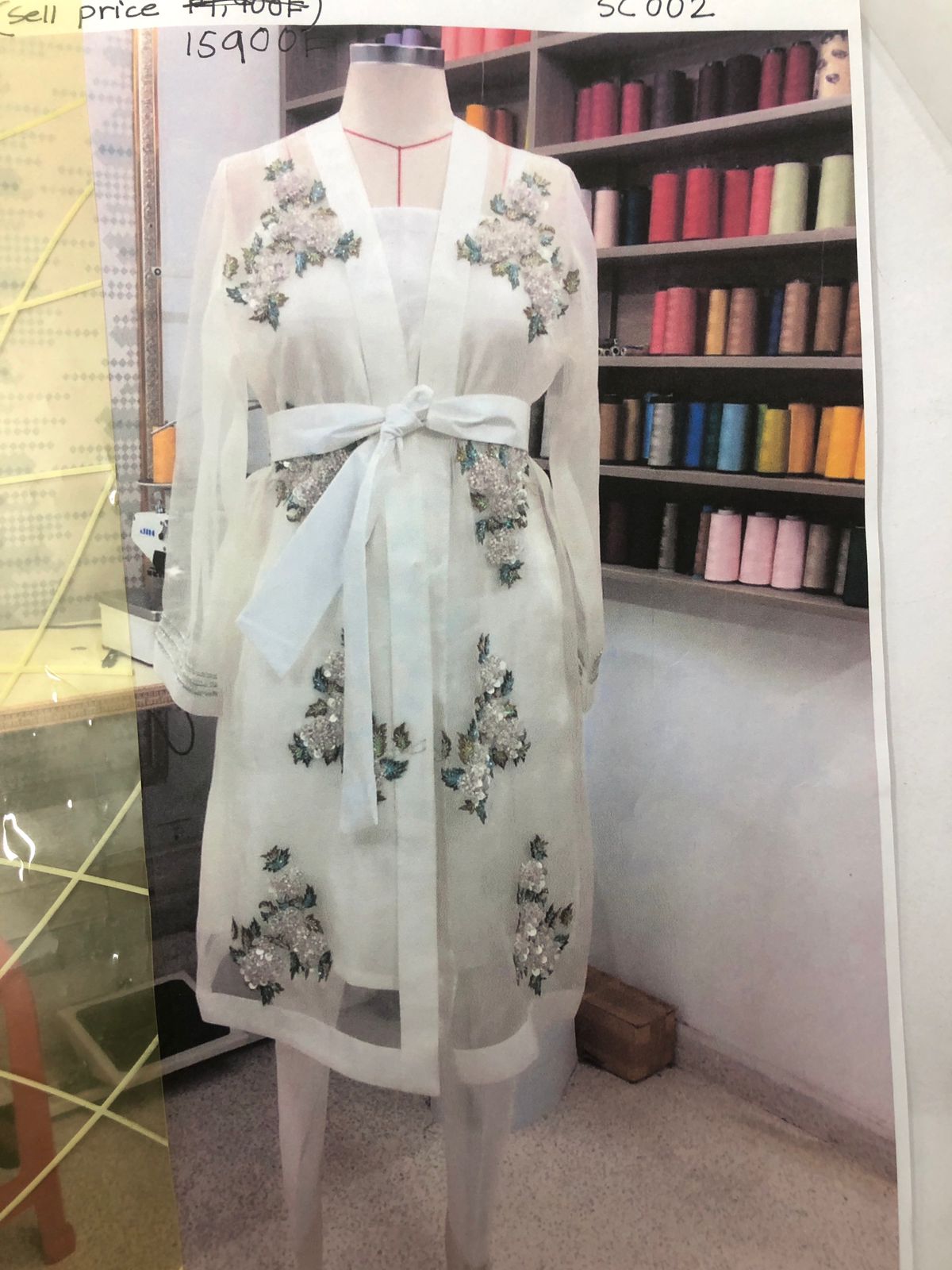 Can you share the process/steps for making a dress from buying the fabric to display on the showroom?